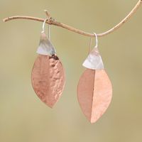 Rose Gold Accent Sterling Silver Dangle Earrings from Bali 'Modern Fall' Item ID: 2671820967