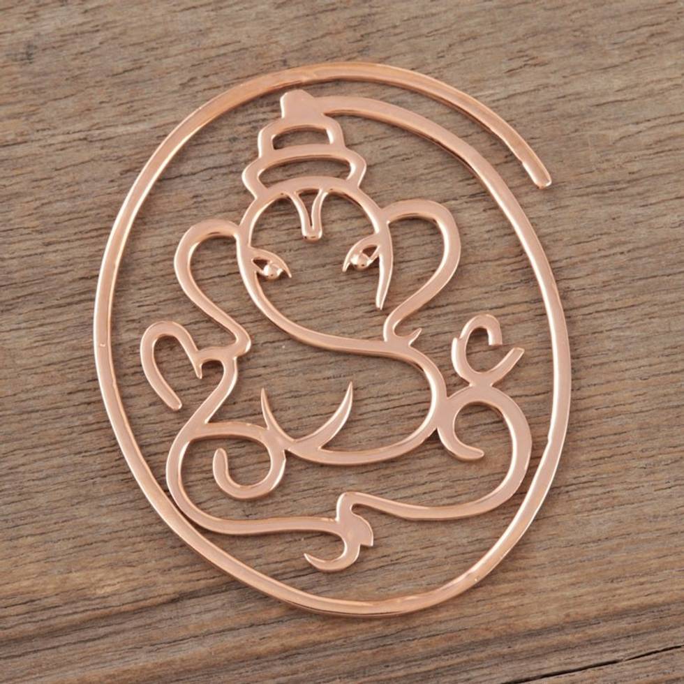 Rose Gold-Plated Bookmark with Ganesha Motif 'Bookworm's Delight' Item ID: 2671789229