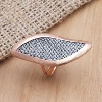 Rose Gold-Plated Brass and Mesh Cocktail Ring 'Rosy Leaves' Item ID: 2671745419