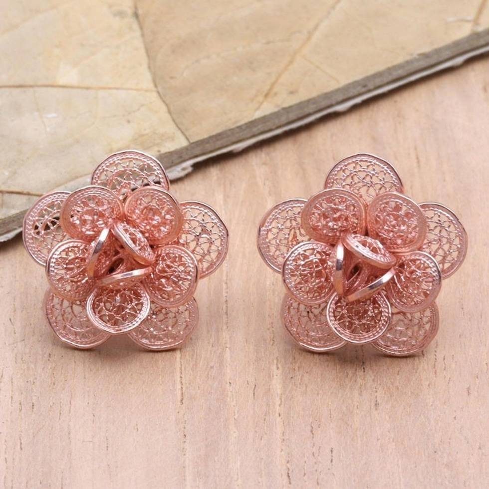 Rose Gold-Plated Floral Button Earrings 'Delicate Plumeria' Item ID: 2671747187