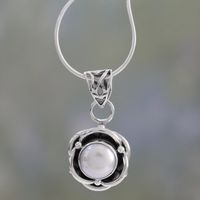 Rose Motif Silver Pendant Necklace with Cultured Pearl 'Transcendent Rose' Item ID: 2671793910