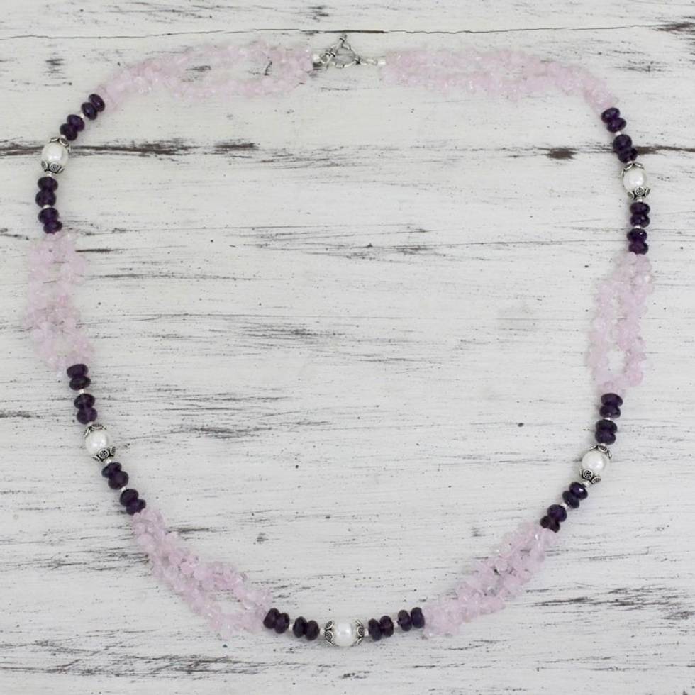 Rose Quartz Amethyst and Pearl Handcrafted Necklace 'Beautiful Boldness' Item ID: 2671793037