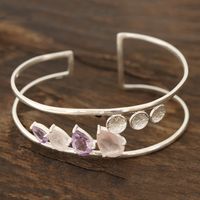 Rose Quartz and Amethyst Cuff Bracelet from India 'Dazzling Teardrops' Item ID: 2671790011