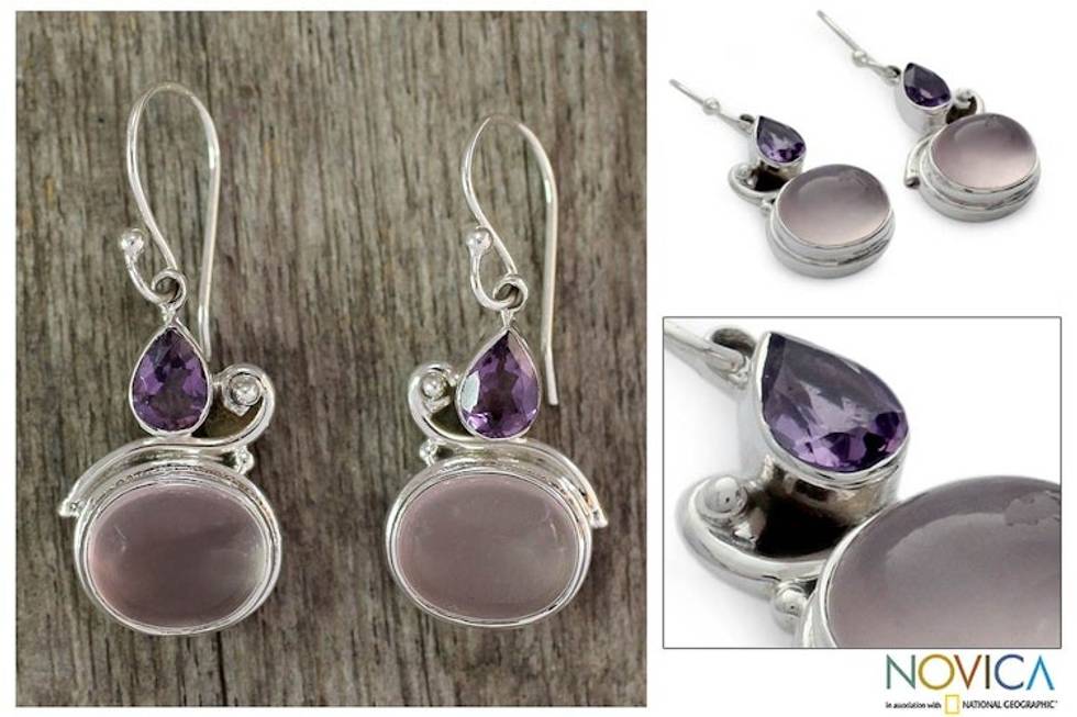 Rose Quartz and Amethyst Earrings on Sterling Silver 'Mumbai Dawn' Item ID: 2671795050