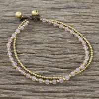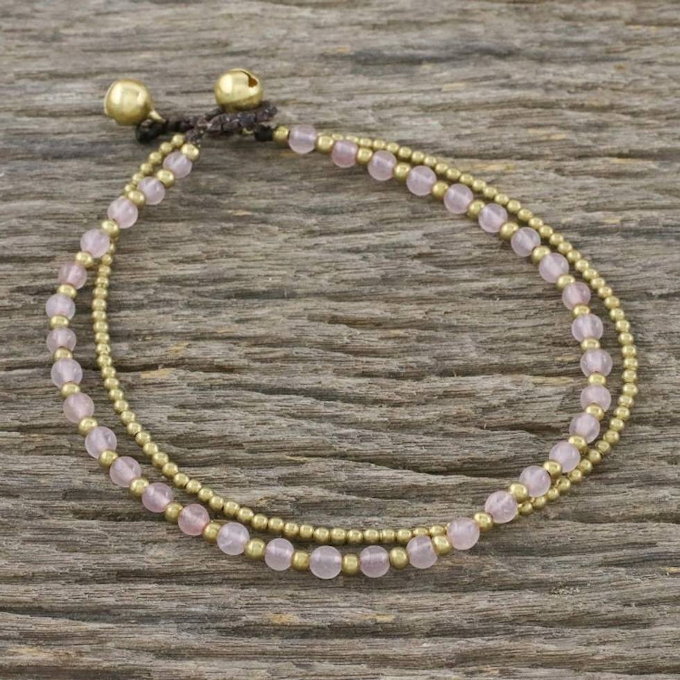 Rose Quartz and Brass Beaded Anklet from Thailand 'Ringing Beauty' Item ID: 2669928121