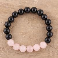 Rose Quartz and Onyx Beaded Stretch Bracelet from India 'Gleaming Union' Item ID: 2671792233