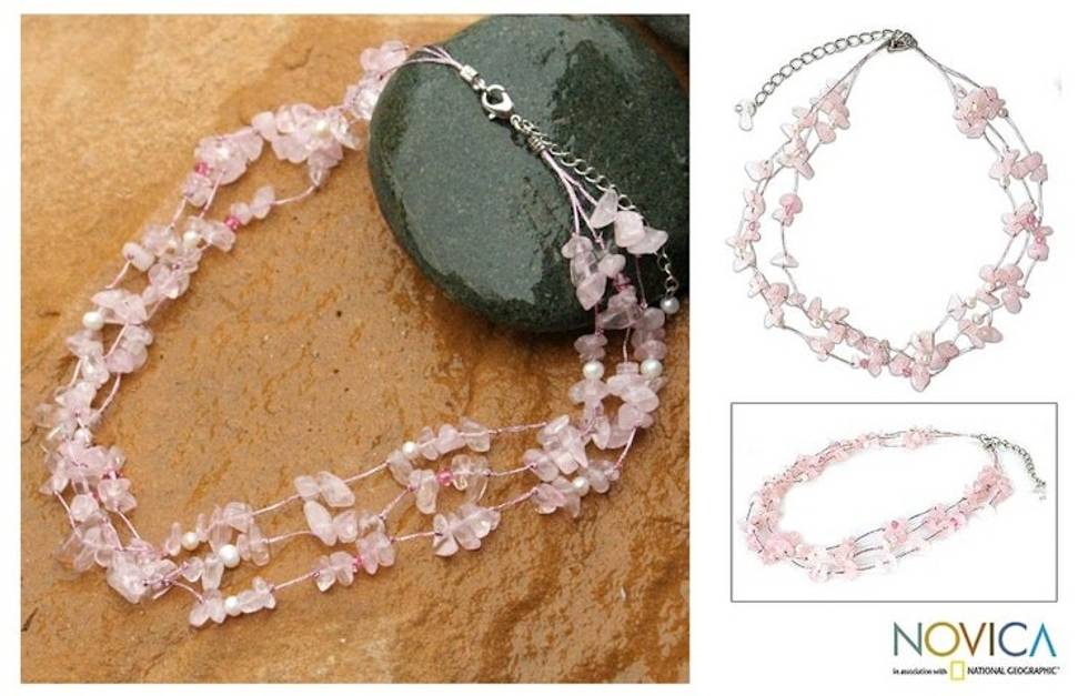 Rose Quartz and Pearl Beaded Necklace 'Natural Spectacular' Item ID: 2671802694