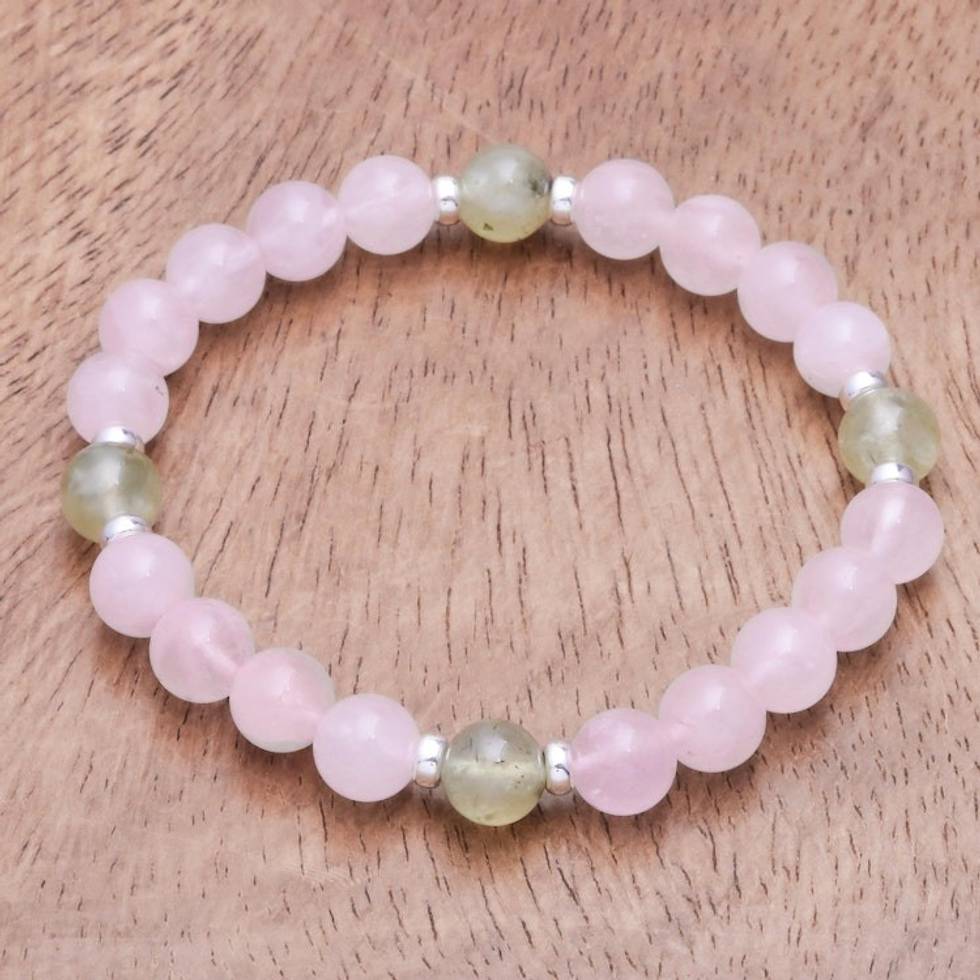 Rose Quartz and Prehnite Beaded Stretch Bracelet 'Forest Romance' Item ID: 2669929638