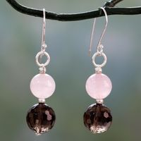 Rose Quartz and Smoky Quartz Dangle Earrings from India 'Earthy Love' Item ID: 2671793256