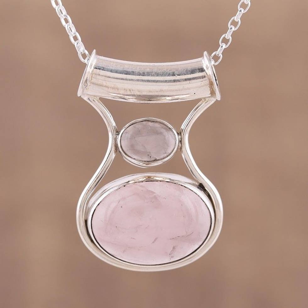Rose Quartz and Sterling Silver Modern Pendant Necklace 'Simply Scintillating' Item ID: 2669923958