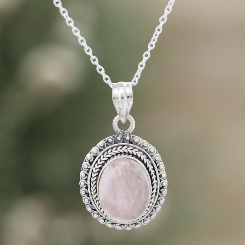 Rose Quartz and Sterling Silver Pendant Necklace from India 'Delicate Charm' Item ID: 2669955533