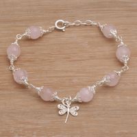 Rose Quartz Bead Charm Bracelet Sterling Silver Dragonfly 'Moonlight Dragonfly in Rose' Item ID: 2669923478