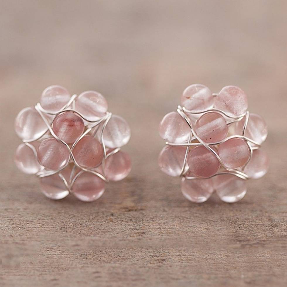 Rose Quartz Bead Cluster Flower and Sterling Silver Earrings 'Andean Corsage' Item ID: 2671402361