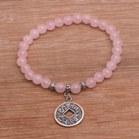 Rose Quartz Beaded Stretch Bracelet with Pis Bolong Coin 'Ancient Luck in Pink' Item ID: 2671733075