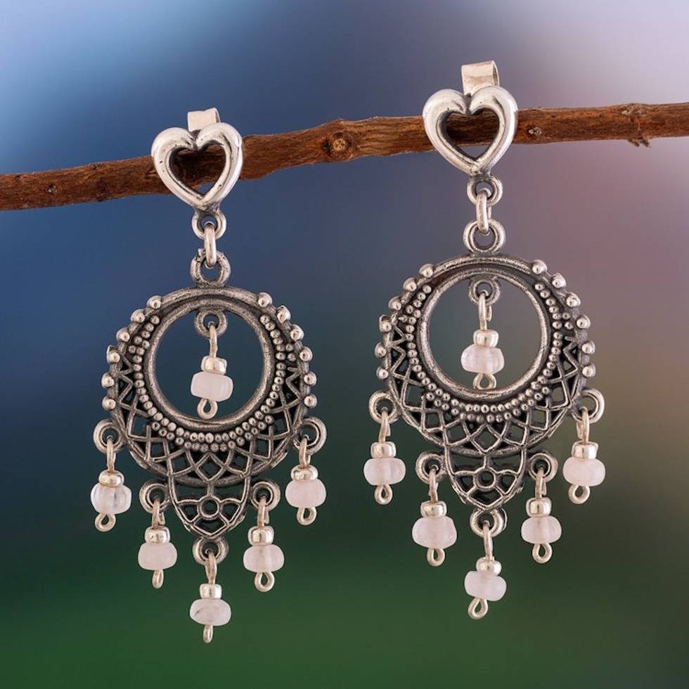 Rose Quartz Chandelier Earrings Crafted in Peru 'Heart Festival' Item ID: 2671690951