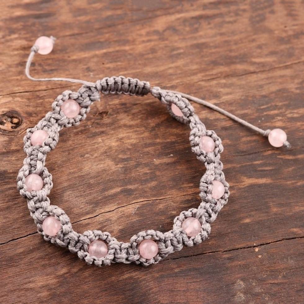 Rose Quartz Macrame Hand-Knotted Bracelet from India 'Macrame Halo' Item ID: 2671790020