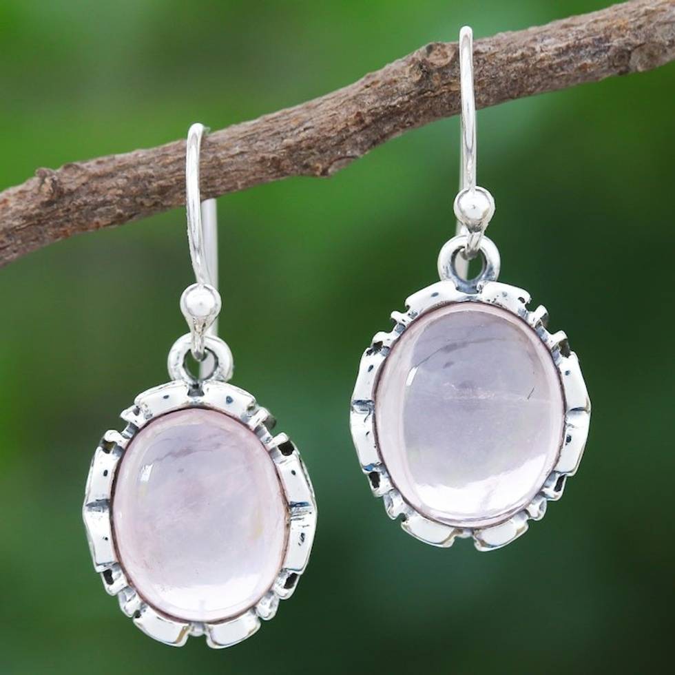 Rose Quartz Sterling Silver Dangle Earrings 'Alluring in Pink' Item ID: 2671641439