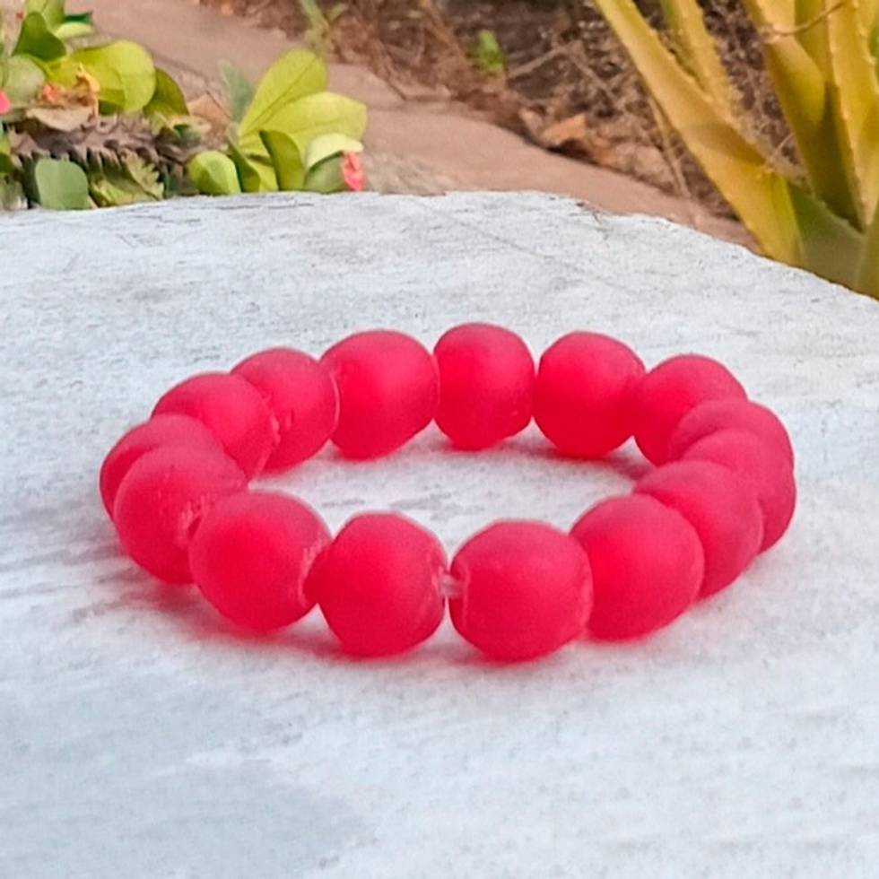 Rosy Red Recycled Glass Beaded Bracelet from Ghana 'Rosy Red' Item ID: 2671803914