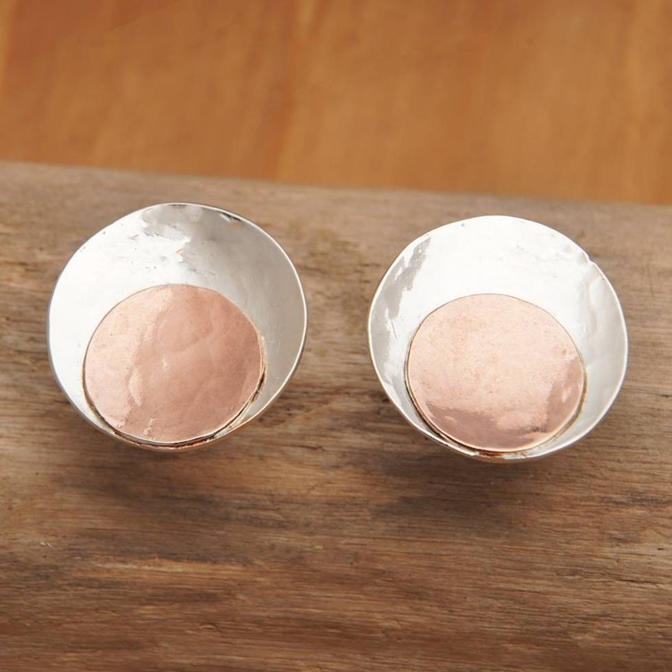 Round 18k Rose Gold-Accented Sterling Silver Button Earrings 'Dulcet Nimbus' Item ID: 2671821085