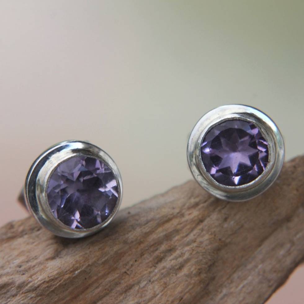 Round Amethyst and Sterling Silver 925 Stud Earrings 'Purple Simplicity' Item ID: 2669923244
