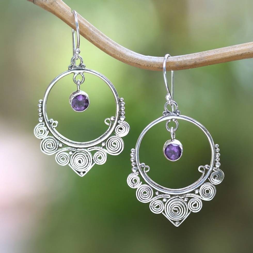 Round Amethyst Dangle Earrings in Sterling Silver 'Opulence' Item ID: 2671702468