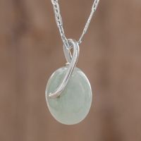 Round Apple Green Jade Pendant Necklace from Guatemala 'Apple Green Wheel of Fortune' Item ID: 2671776965