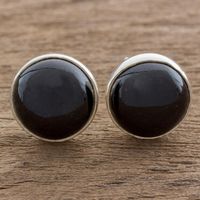 Round Black Jade Stud Earrings on Sterling Silver 'Harmonious Peace' Item ID: 2671626550