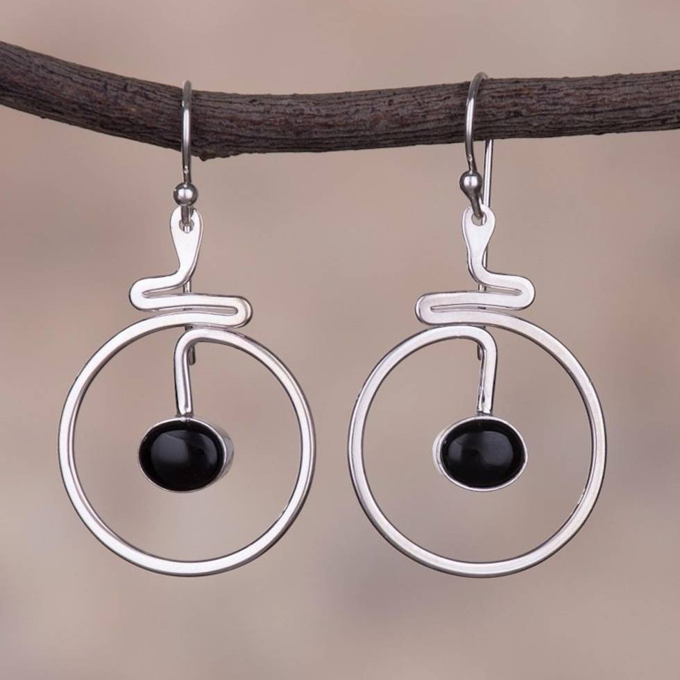 Round Black Obsidian Dangle Earrings from Peru 'Swirling Moons' Item ID: 2671691430