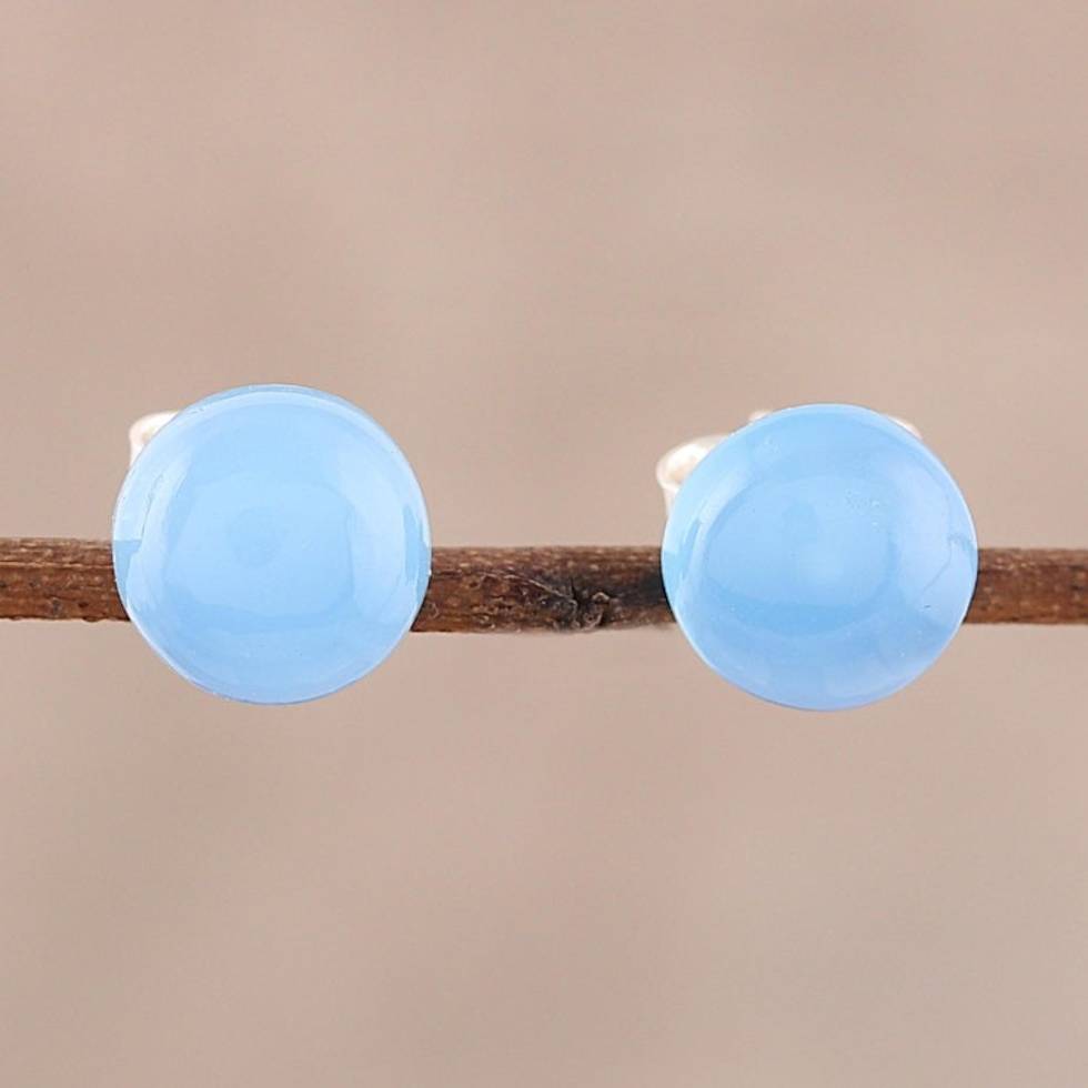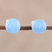 Round Blue Chalcedony Stud Earrings from India 'Gemstone Orbs' Item ID: 2669955763