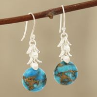 Round Composite Turquoise Dangle Earrings from India 'Dancing Fruit' Item ID: 2671790030