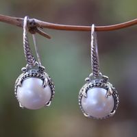 Round Cultured Pearl Dangle Earrings from Bali 'Glowing Eyes' Item ID: 2671737626