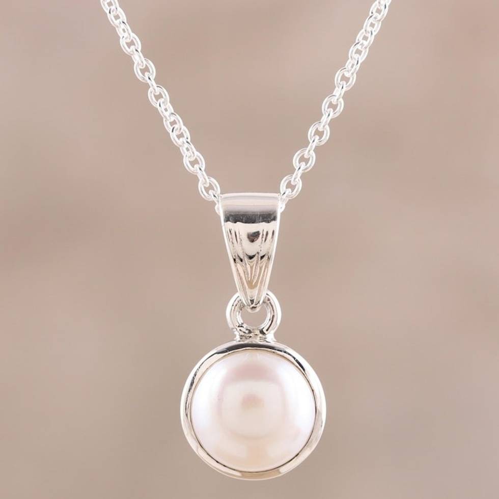 Round Cultured Pearl Pendant Necklace from India 'Elegant Bliss' Item ID: 2671618946