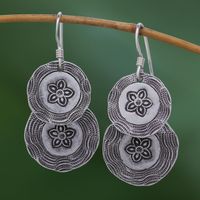 Round Floral Karen Silver Dangle Earrings from Thailand 'Floral Cyclones' Item ID: 2671798958