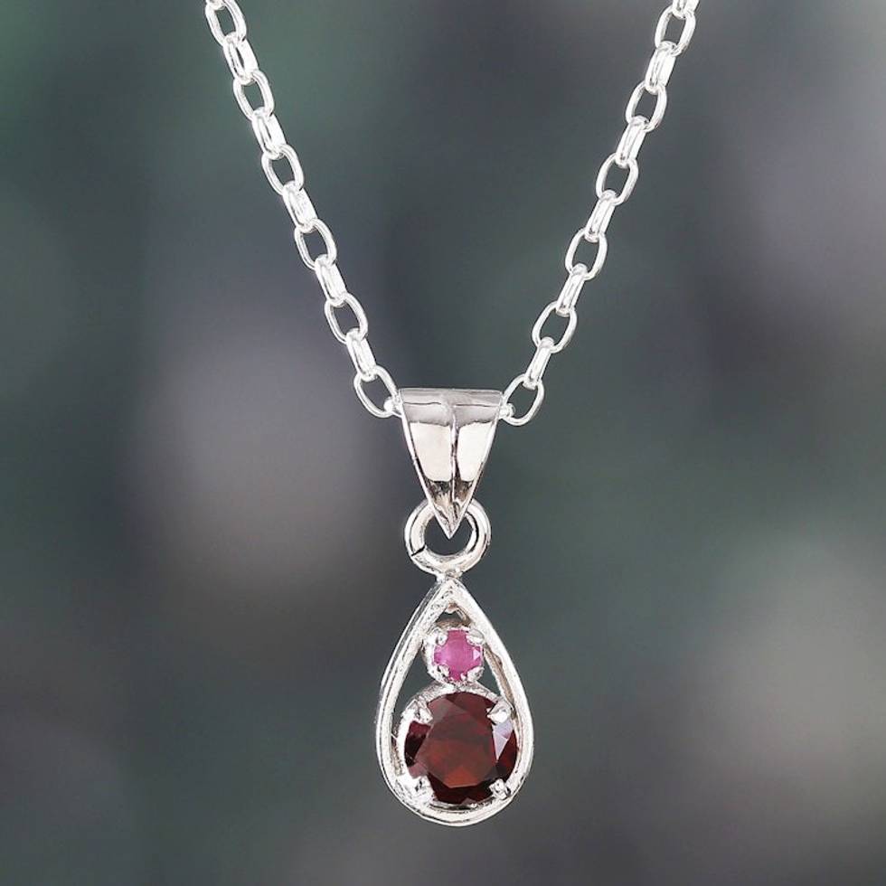 Round Garnet and Ruby Pendant Necklace Handmade in India 'Romantic Caprice' Item ID: 2671670037