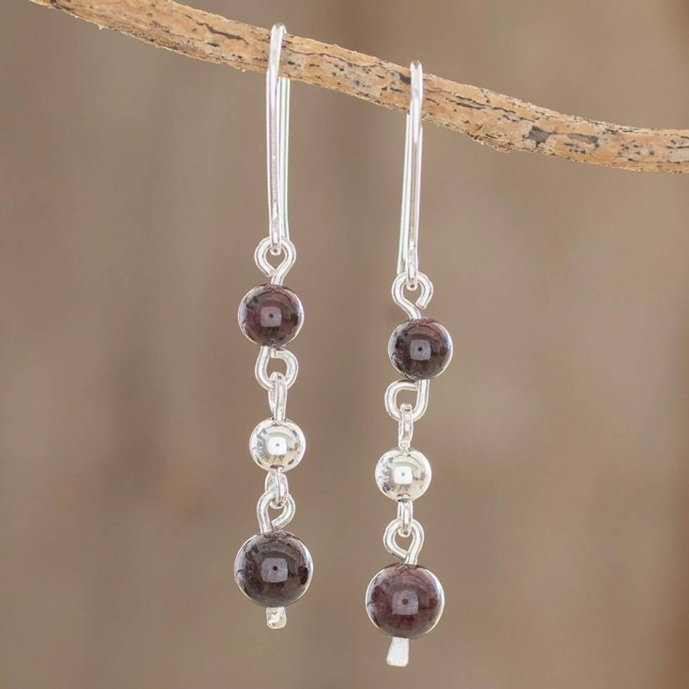 Round Garnet Dangle Earrings Crafted in Guatemala 'Lovely Passion' Item ID: 2671776920