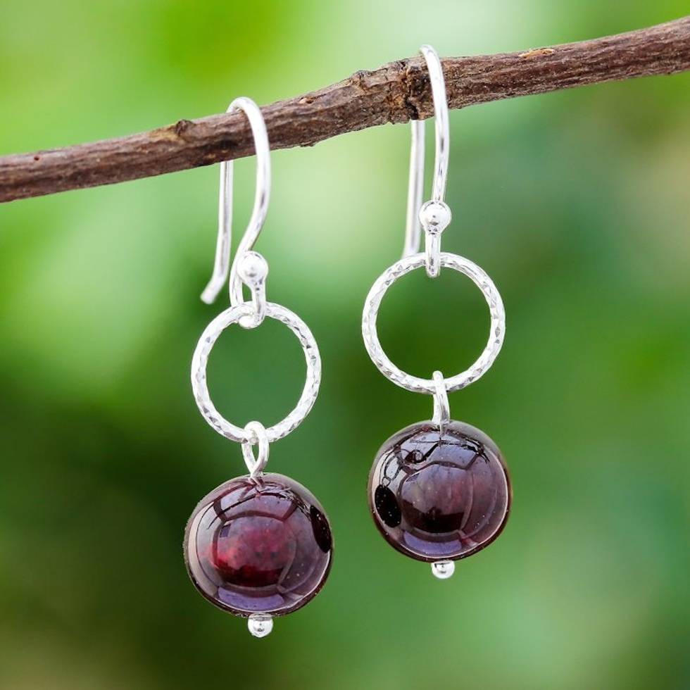 Round Garnet Dangle Earrings Crafted in Thailand 'Ring Shimmer' Item ID: 2669931402