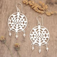 Round Geometric Cultured Pearl Dangle Earrings from Bali 'Pearly Hypnotism' Item ID: 2671765015