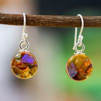 Round Ginger Dichroic Art Glass Dangle Earrings from Mexico 'Jolly World' Item ID: 2671807900