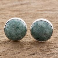 Round Jade Stud Earrings in Sterling Silver 'Harmonious Peace' Item ID: 2669933644