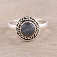 Round Labradorite Sterling Silver Rope Motif Cocktail Ring 'Stormy Moon' Item ID: 2676664671