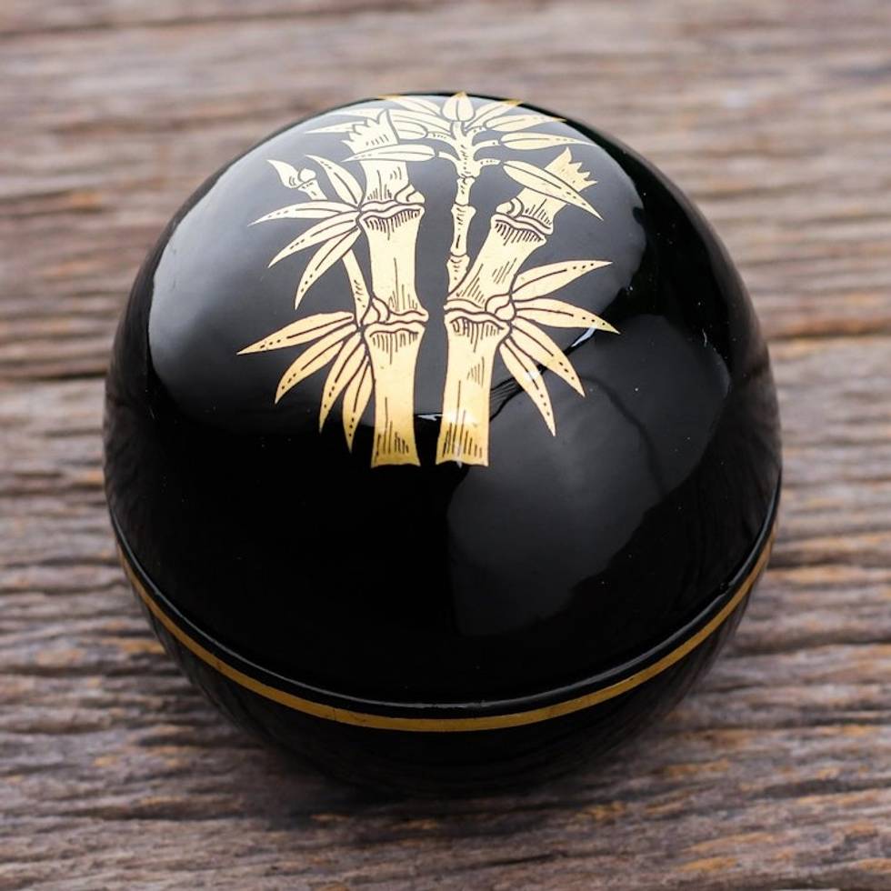 Round Lacquerware Box from Thailand 'Shimmering Bamboo' Item ID: 2671799684