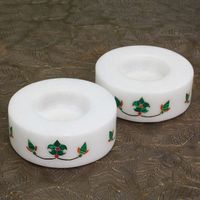 Round Marble Tealight Holder with Green Blooming Buds Pair 'Floral Symmetry in Green' Item ID: 2671793915