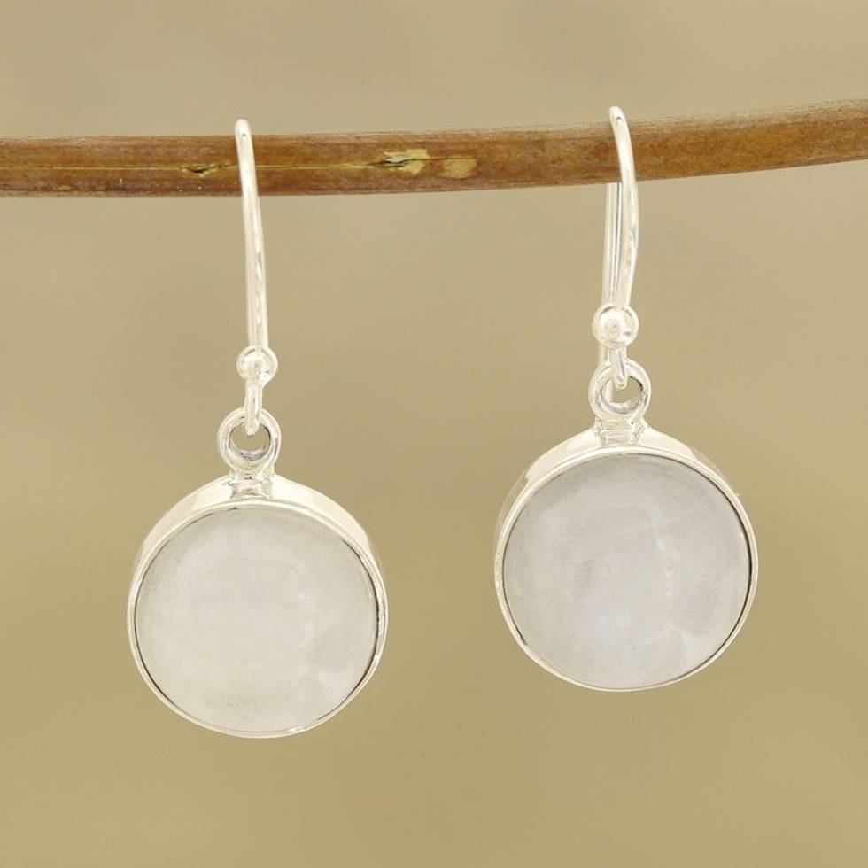 Round Rainbow Moonstone Dangle Earrings from India 'Rainbow Domes' Item ID: 2671789452