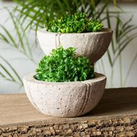 Round Reclaimed Stone Flower Pots from Mexico Pair 'Verdant Bowls' Item ID: 2669897329