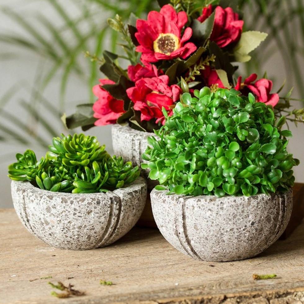 Round Reclaimed Stone Flower Pots from Mexico Set of 3 'Petite Fleurs' Item ID: 2669897893
