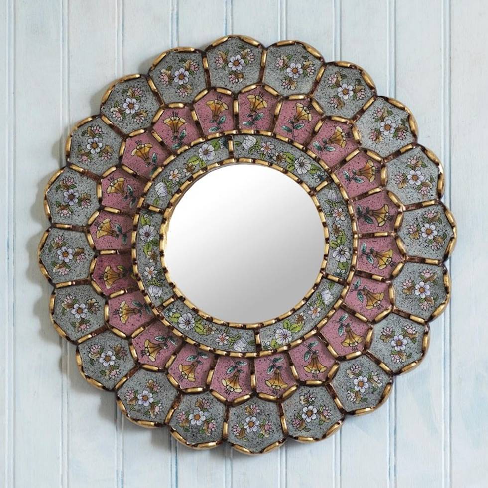 Round Reverse-Painted Glass Mirror 'San Juan Bouquet' Item ID: 2669908176