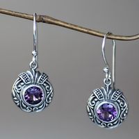 Round Silver and Amethyst Dangle Style Earrings 'Lilac Ladybug' Item ID: 2671701990