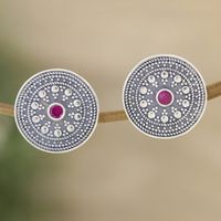 Round Sterling Silver Button Earrings with Cubic Zirconia 'Fuchsia Mirage' Item ID: 2671786963