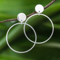 Round Sterling Silver Dangle Earrings from Thailand 'Wondrous Circles' Item ID: 2671641301