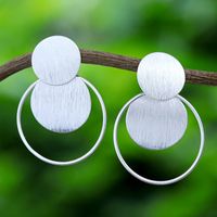 Round Sterling Silver Dangle Earrings with Polished Finish 'Blurry Moons' Item ID: 2671797893